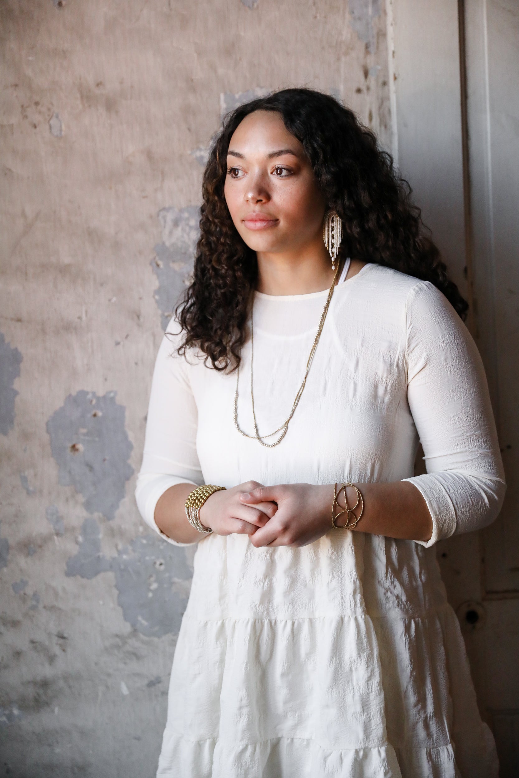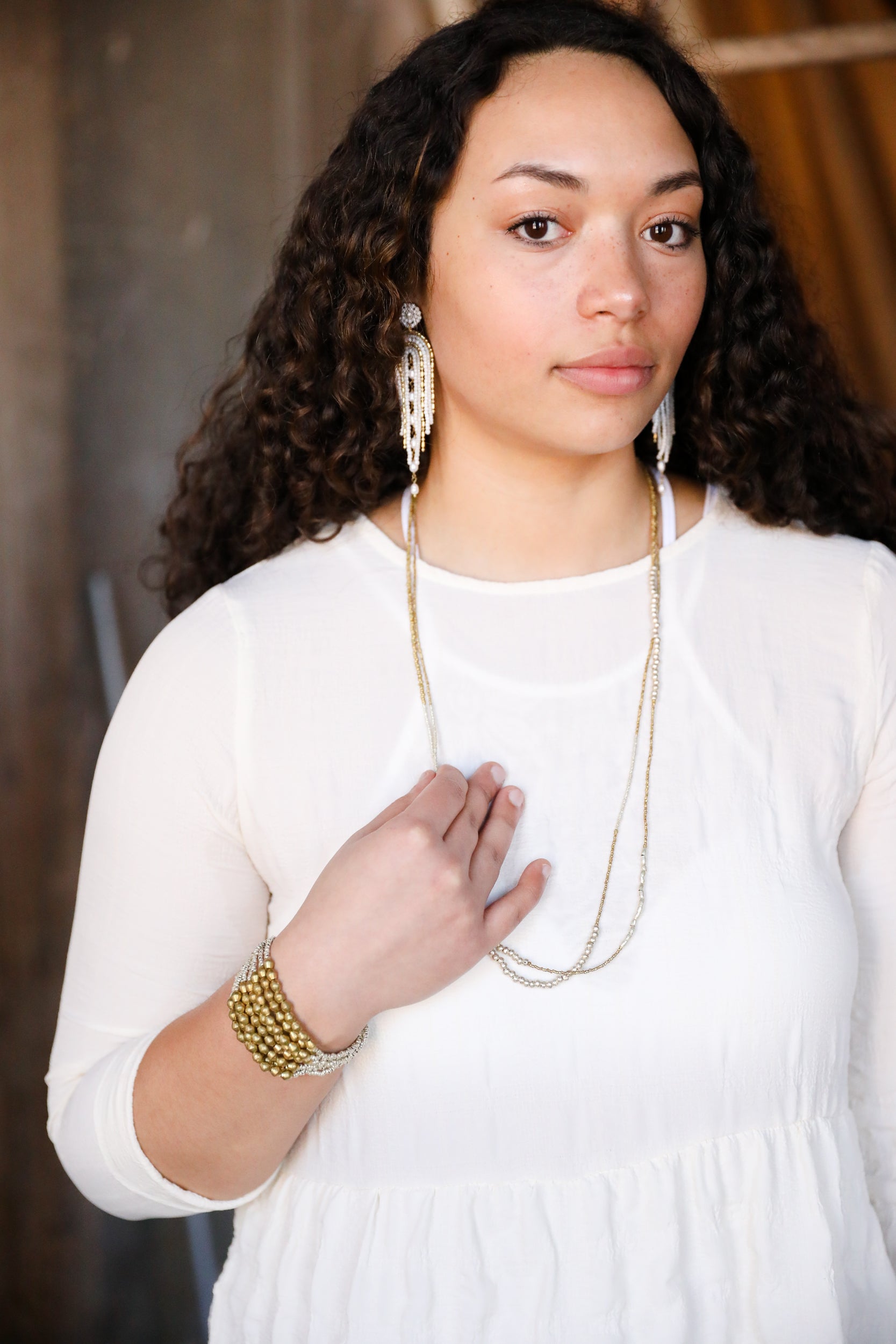 The piece of jewelry in this collection comes from Ethiopian women who specialize in working with recycled bullet casing left over from the war between Ethiopia and Enitrea over a decade ago. These bullets have been stockpiled and crafted into beads you can see in bracelets, earrings and necklaces.