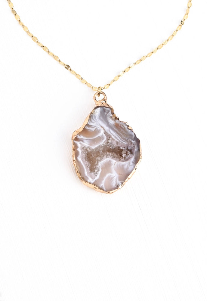 Each beautiful agate stone has a unique story to tell. Every stone features layers of stunning natural colors lovingly wrapped in 14k plated gold suspended from a timeless adjustable chain highlighting the beauty, color, texture and depth in the Natural Beauty Agate and Gold Necklace. Please note that this product uses natural stone and so it will vary slightly in size, shape, and color from the one in the photos here.