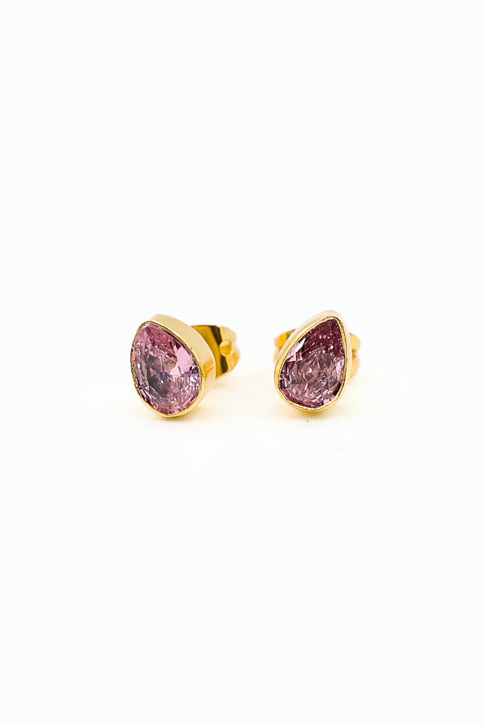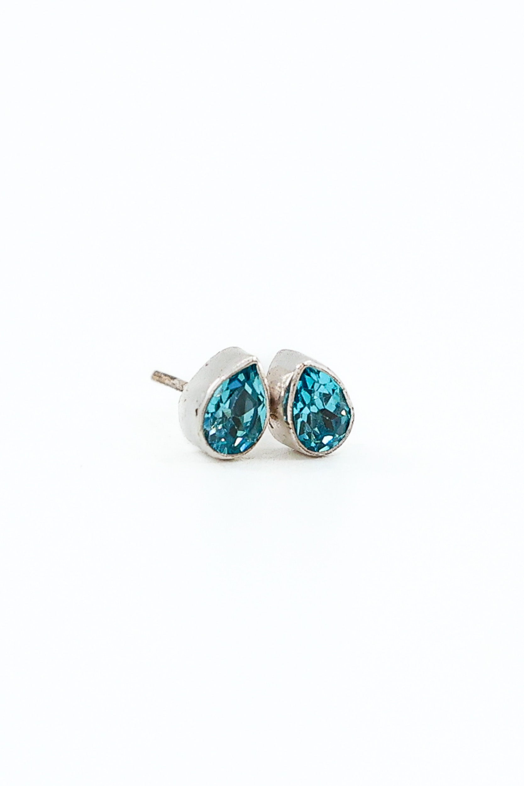 Earrings measure 1cm. Silver-plated or brass recycled metal. Blue or pink zircon stone. Nickel-free.