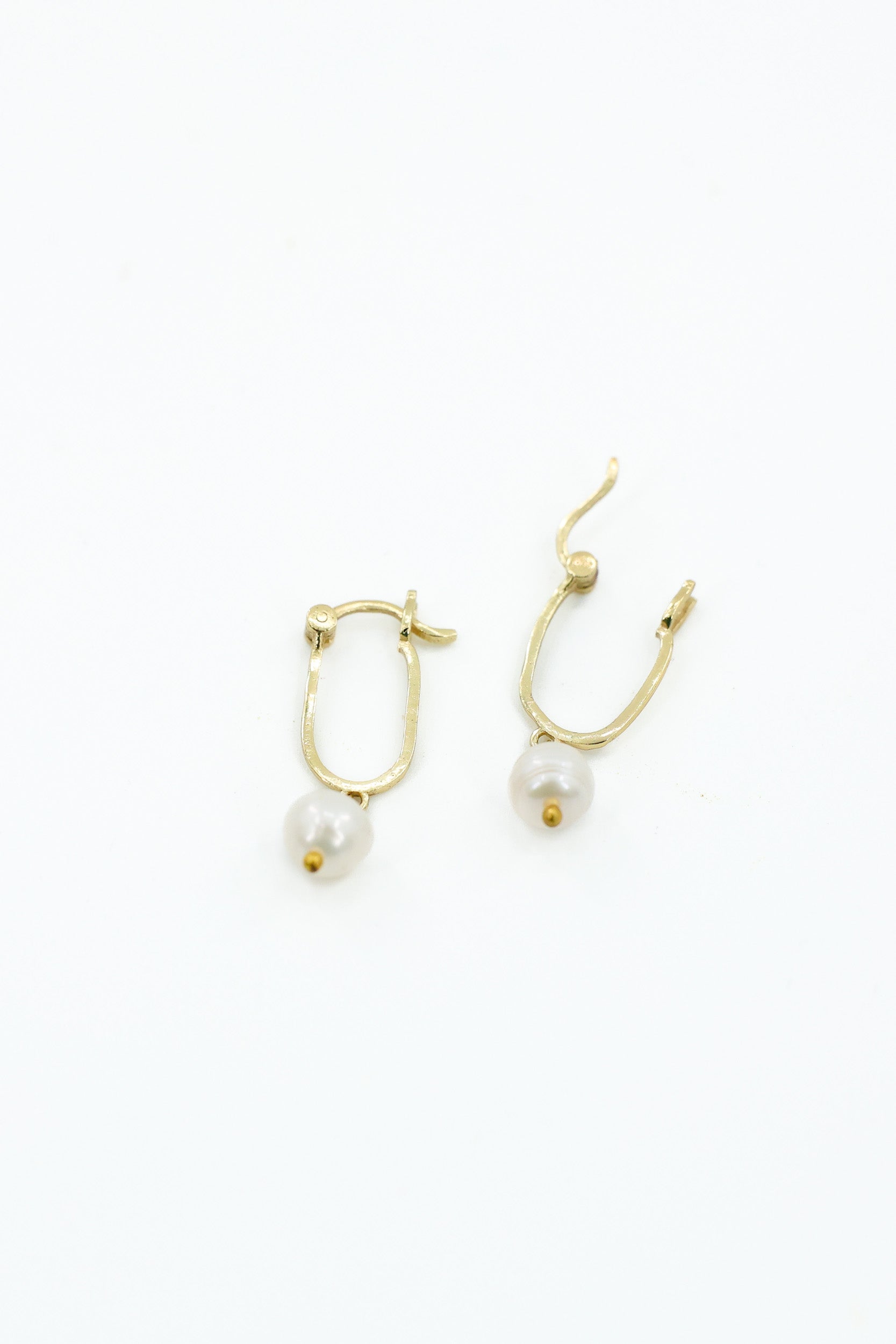 Earrings measure 1.25". Made from pure brass recycled metal and freshwater pearl. Nickel-free.
