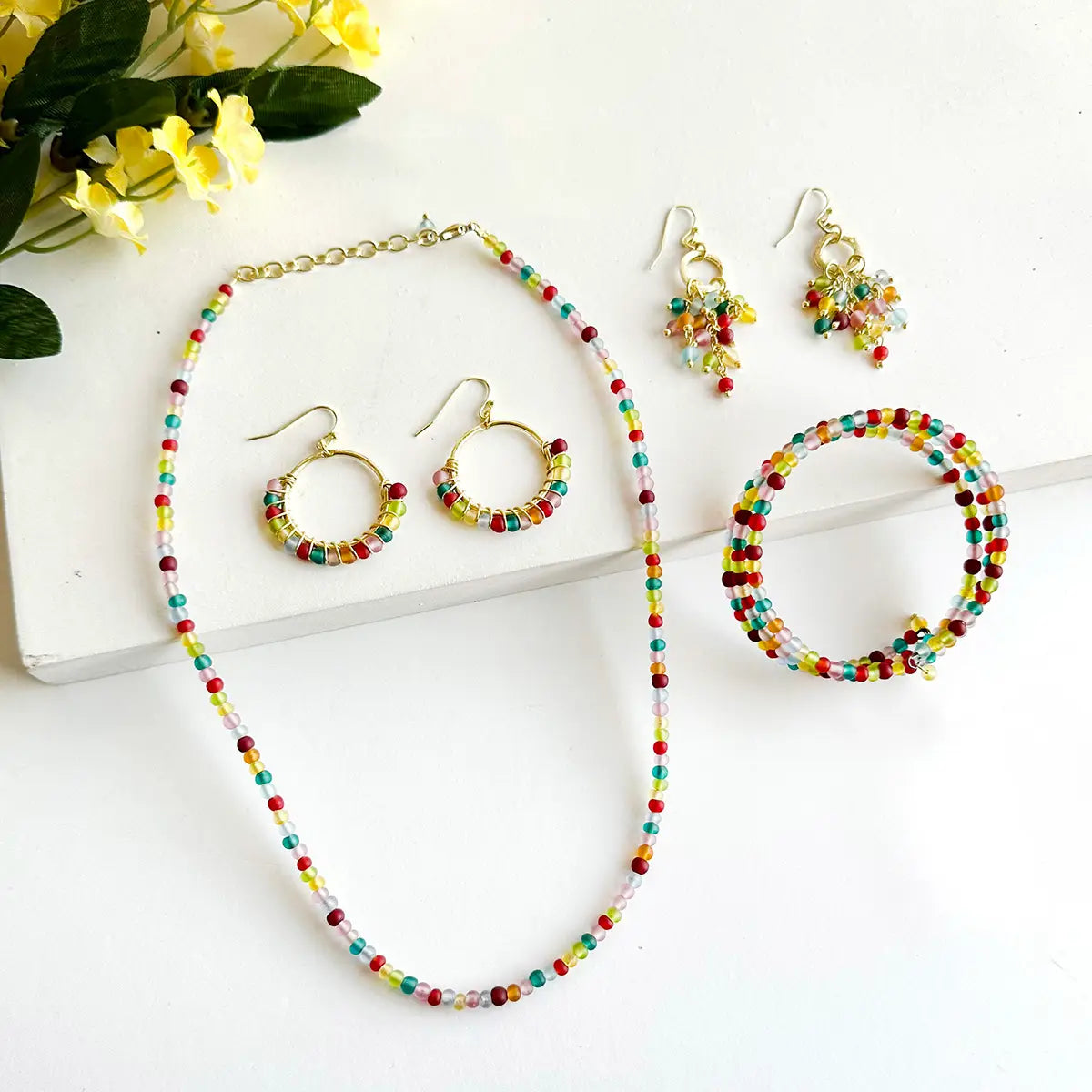 A new twist on your everyday hoop with our new our NEW Kaleidoscope Hoops! These unique earrings feature sixteen vibrant multicolored glass beads, handcrafted by fair trade artisans in India using recycled glass. These dainty earrings are perfect for those who love the colorful style of Kantha jewelry, but prefer to wear a more subtle, dainty style.