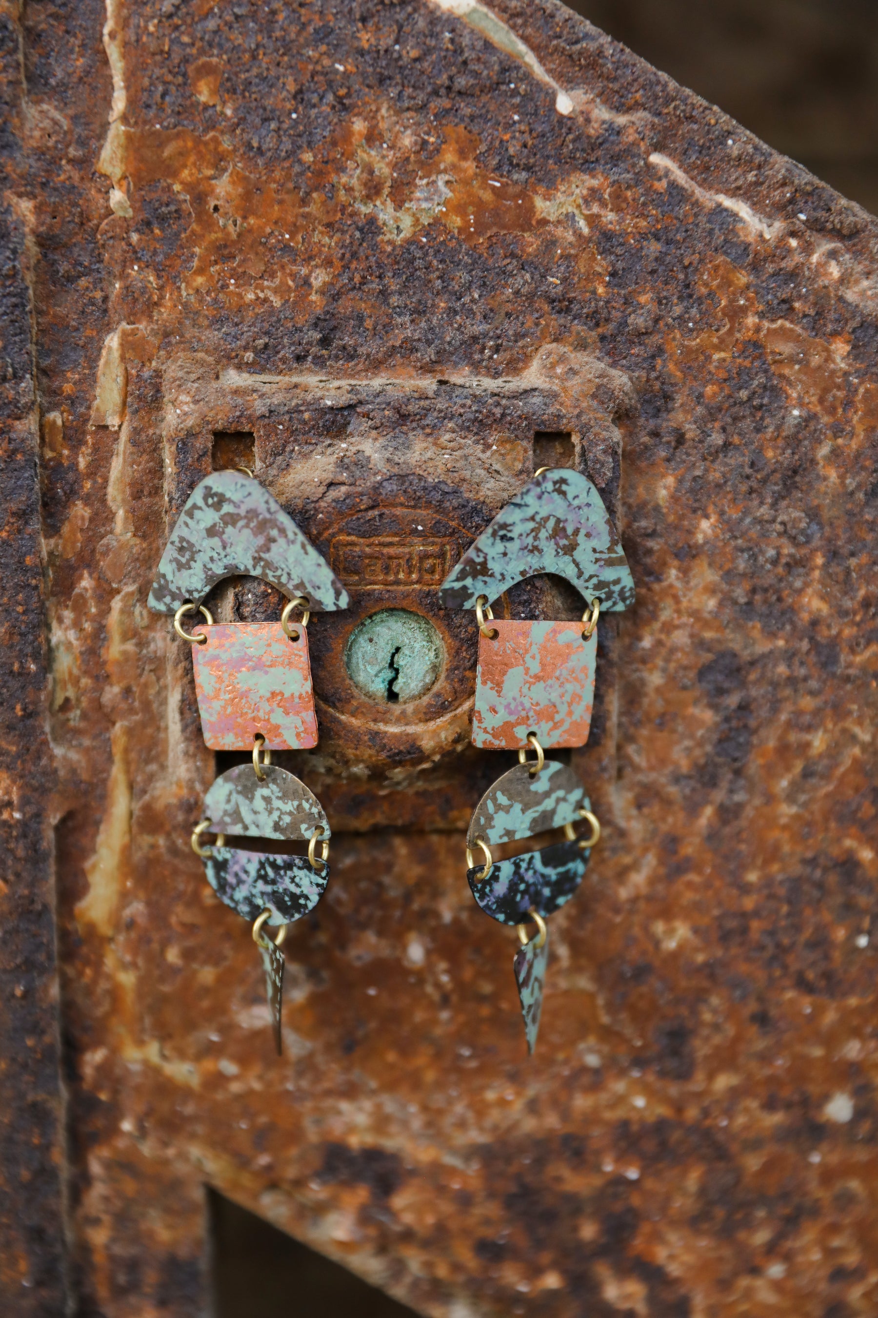Check out these statement studs! These painted patina earrings have a vintage flair with neutral tones, making them a great pair of earrings for your boho vibe.