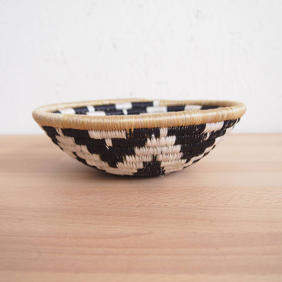 This sisal, woven basket is approximately 12" in diameter and woven by our artisans in Gitarama, Rwanda. The sisal is woven around sweetgrass, a fragrant grass with a subtle sweetness. Each sisal Rwandan basket comes with a string attached to the back so that you can hang it on the wall. In addition to making a beautiful table display, these baskets can also be hung as art. You can combine them with other baskets or works of art to make a feature wall collage.