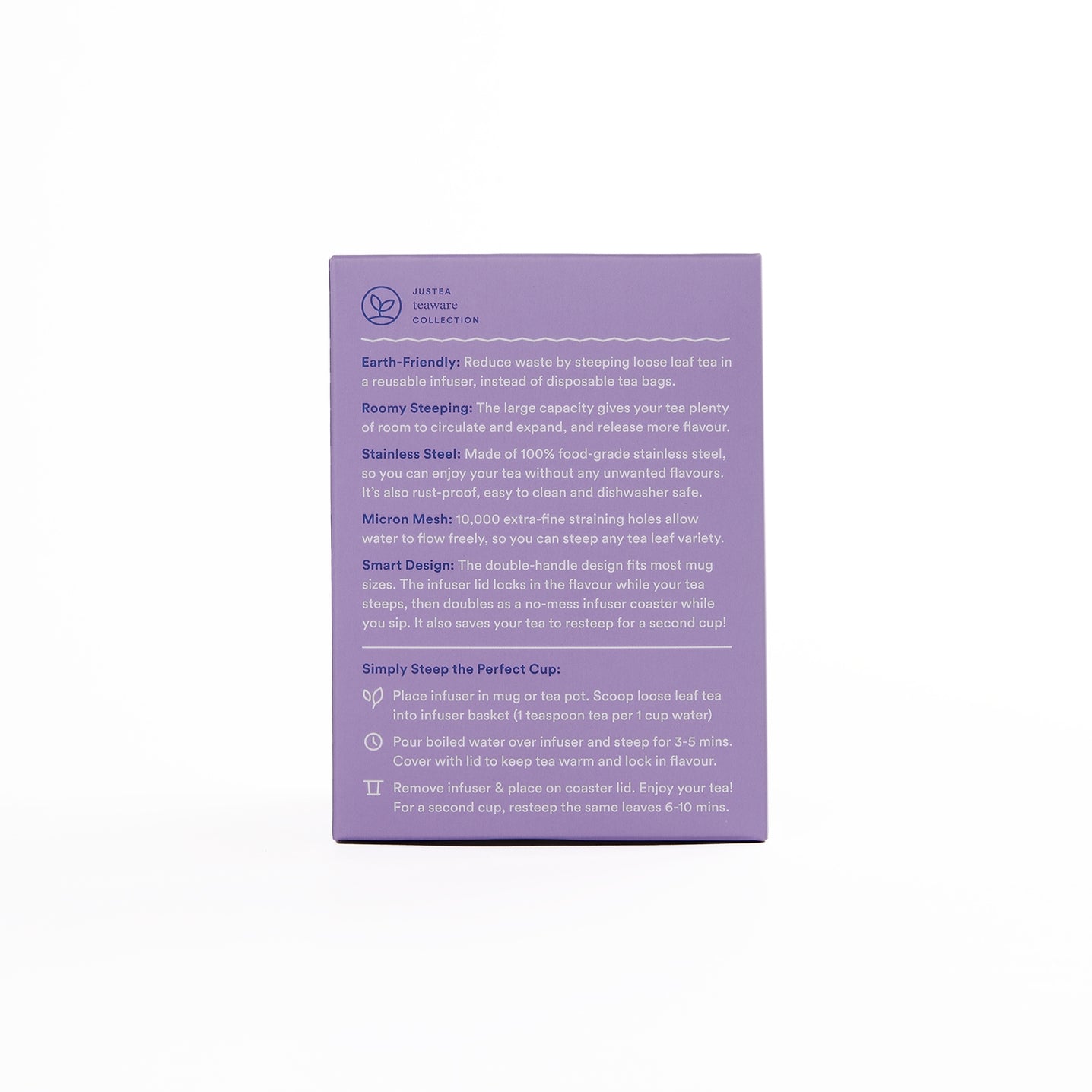 Smart Design: The double-sided handle design fits most mug sizes. The infuser lid locks in the flavor while your tea steeps then doubles as a no-mess infuser coaster while you sip. It also saves your tea to re-steep for a second cup.