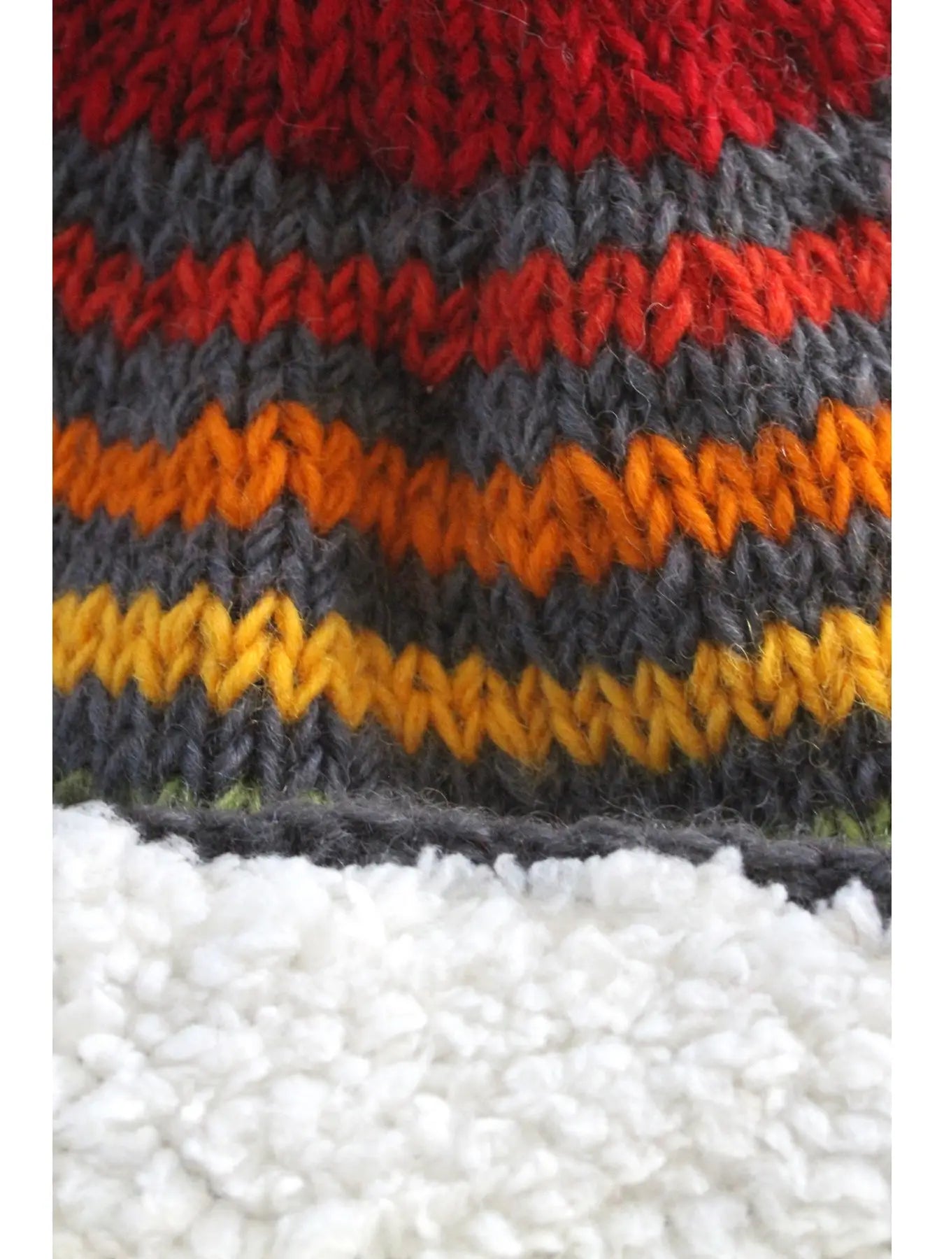 Add some flair to any outfit with this vibrant, eye-catching beanie! Rainbow stripes liven up a classic dark background, while the soft sherpa lining ensures warmth and comfort. Enjoy a fun, funky accessory that will bring color and life to any ensemble!
