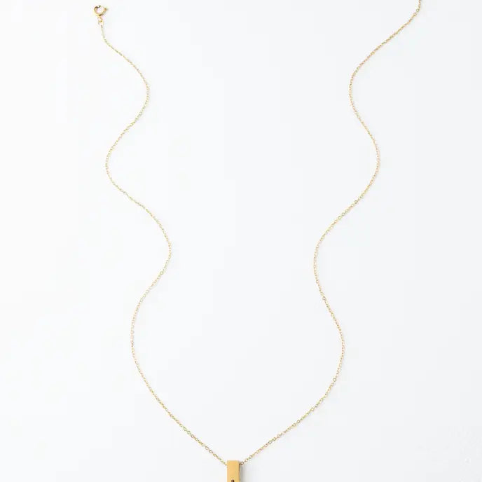 Materials: 14k gold plated stainless steel bar on a stainless steel chain
