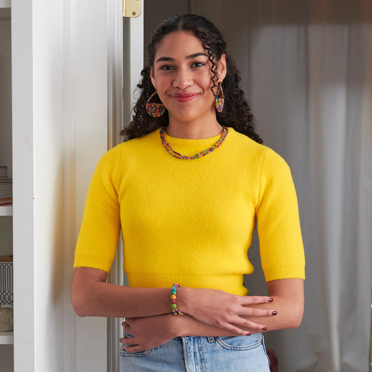 Two strands of teeny tiny Kantha beads form this candy-colored necklace that looks great alone or layered. The Tiny Kantha Bead Necklace has our smallest Kantha beads yet, each measures just 1/8” wide. They’re crafted from repurposed Sari and Kantha textiles so exact colors will vary.