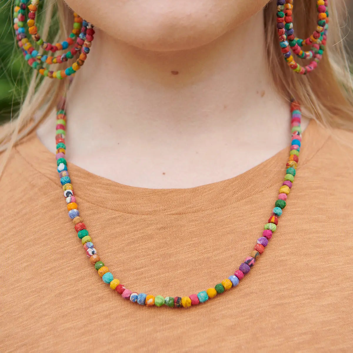Teeny tiny Kantha beads form this candy-colored strand that looks great alone or layered. Part of our Kantha Milieu Collection, these are our smallest Kantha beads yet!