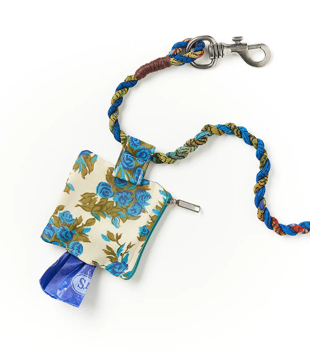Ethically handcrafted using upcycled and locally sourced materials, our eco-friendly Dog Waste Bag Dispenser features one of a kind apparel and accessories for your furry friend. This unique dog waste bag holder and dispenser is handcrafted with vibrant, upcycled Indian textiles and holds two rolls of plastic pet waste bags. This item is intentionally designed for convenience and style, featuring a top zipper for filling the pouch, a side opening for retrieving individual bags, and a velcro strap for securing the pouch to a leashes, backpacks and more. Upcycled design honors the spirit of sustainability and resourcefulness within our artisan communities, and provides for rich combinations with a one of a kind quality.