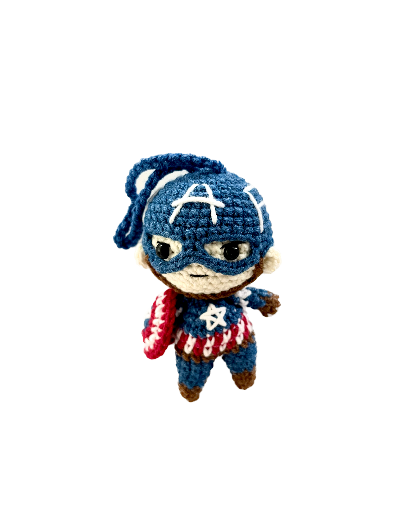 Fans of Marvel Comics, the Avengers and the Guardians of the Galaxy, Captain America is represented in this hand-woven ornament hand crafted using crochet techniques by talented artisans in Vietnam.