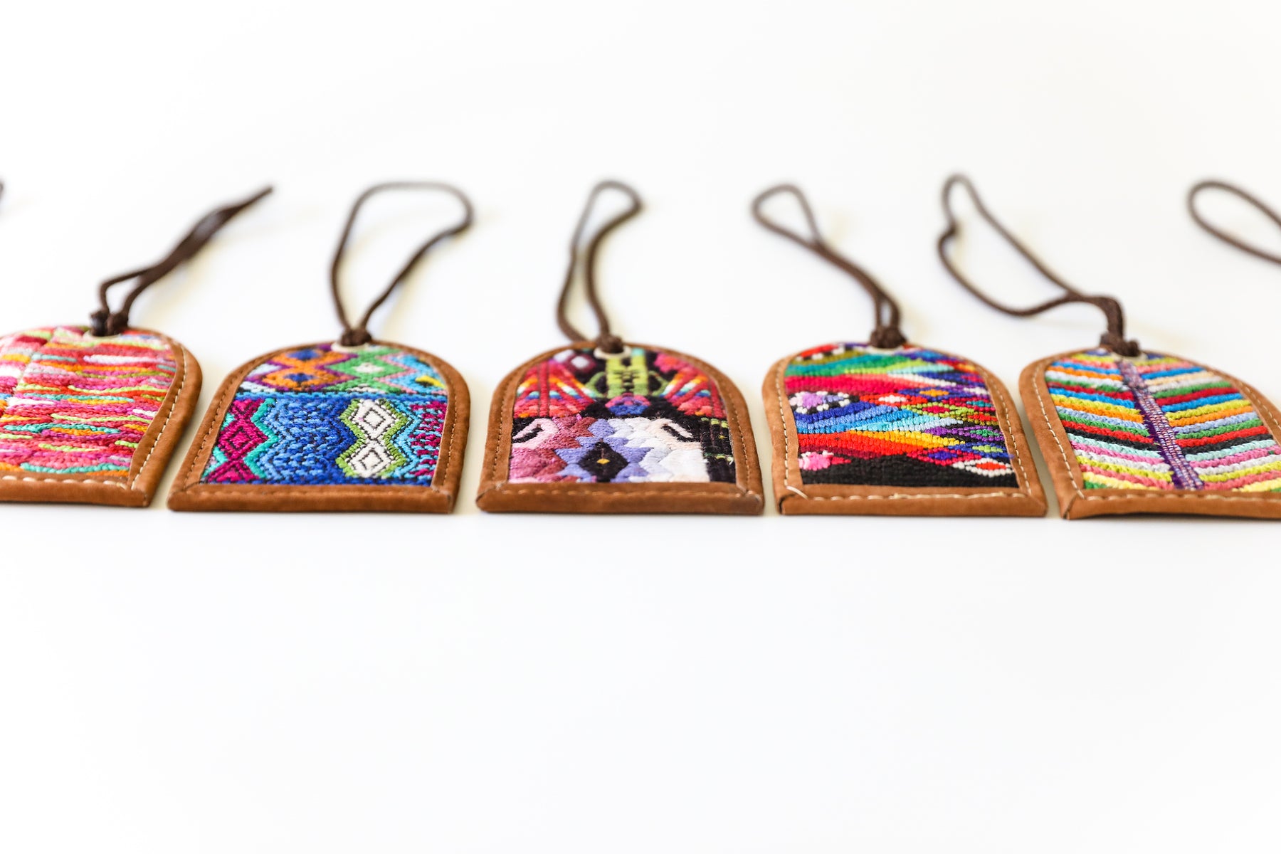 These one of a kind, handmade luggage tags are made from up-cycled Guatemalan hand weaved fabric called Huipils and genuine suede. Travel in style with this perfect accompaniment to your journey.